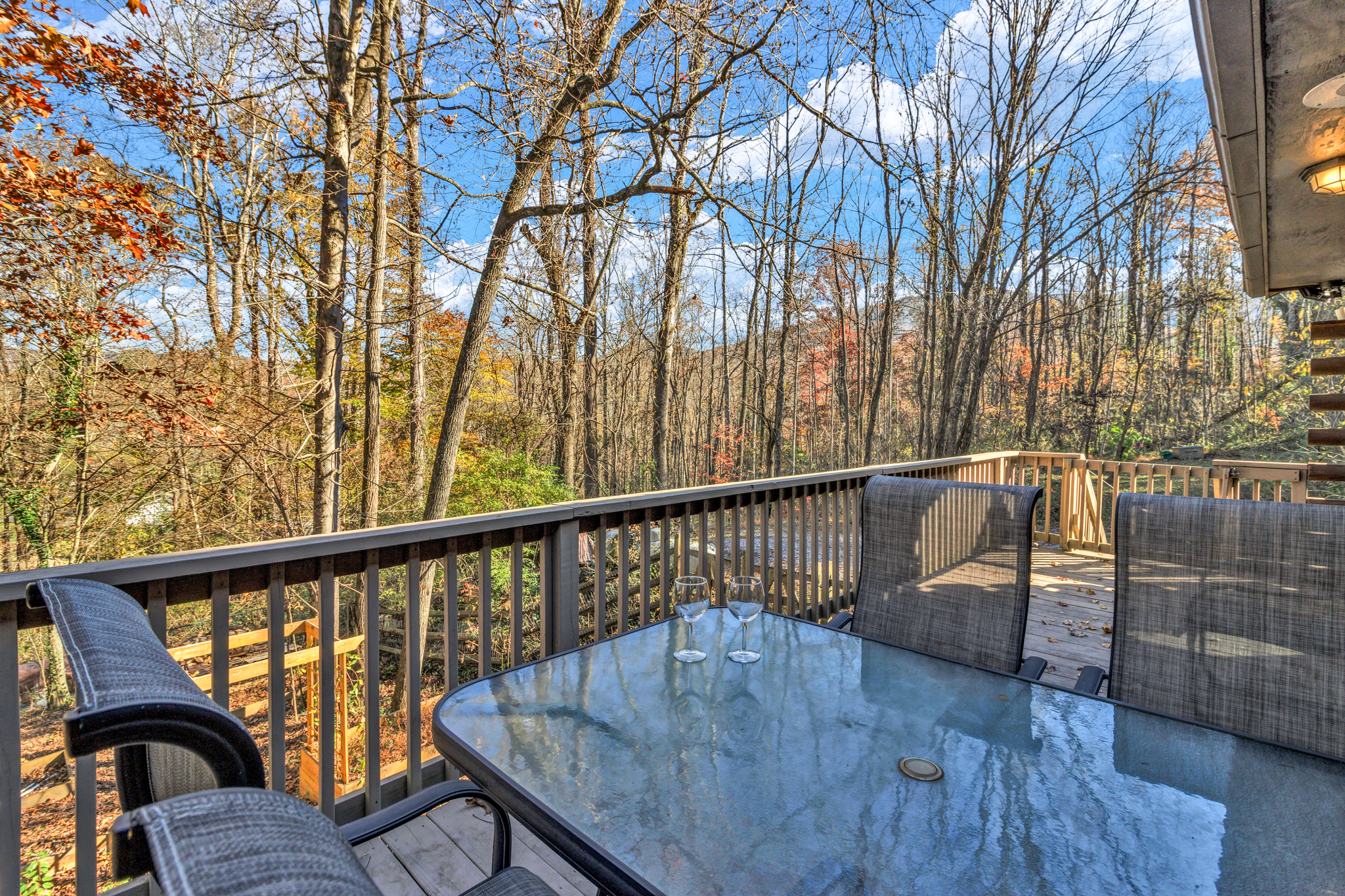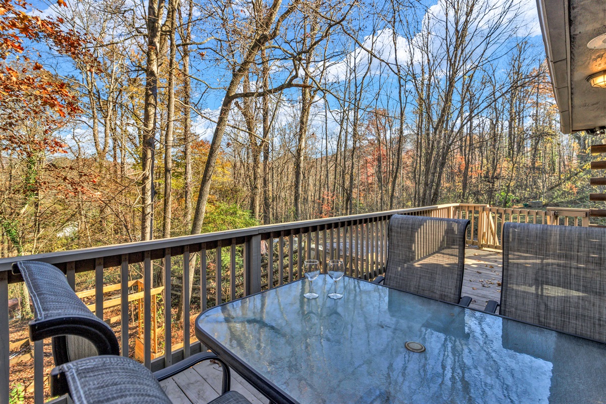 The fully stocked kitchen makes it easy to cook romantic meals at home, and the back deck offers even more privacy, with forest views and a propane grill for easy outdoor dining.